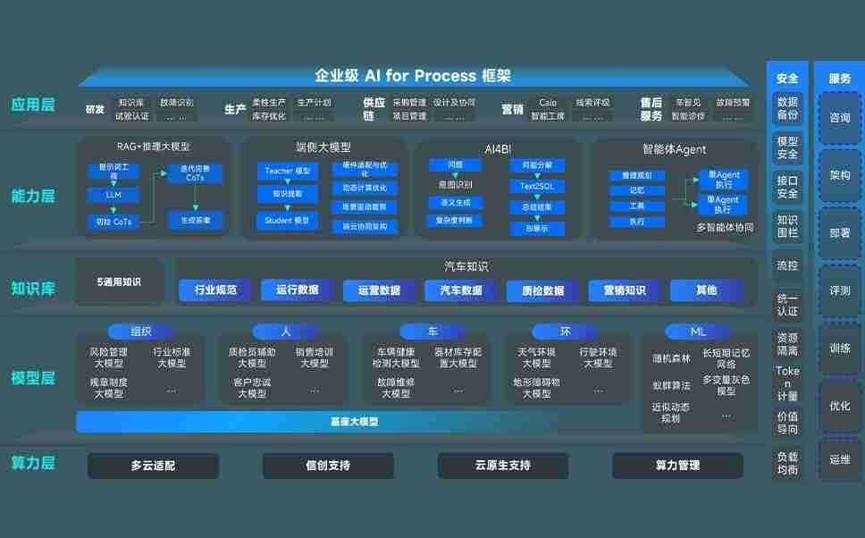 78m威九国际问学智车解决方案是一套基于AI技术的汽车行业智能化系统,,覆盖从底层算力到顶层AI应用的全栈方案。。方案由算力层、、、、模型层和应用层组成:算力层,,,,方案支持多种一体机配置,,,,具备云端灵活部署、、、多云适配以及动态优化计算资源的能力;模型层,,,,78m威九国际问学平台版提供了企业级AI应用一站式构建与管理平台,,,支持基于后训练强化技术的汽车企业专属模型的训练、、评测和运营;应用层,,,,78m威九国际问学DeepSeek版提供包括超级员工、、智能招采、、、智能营销、、、、智能客服、、、、AI for BI等一系列解决方案,,,,可助力汽车行业实现数字化转型,,让管理更智能、、、响应更敏捷。。。。