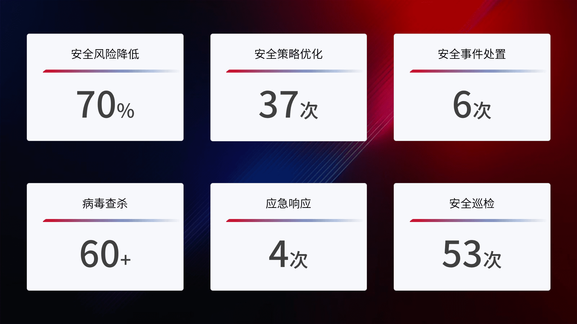 提供全面的安全事件报告体系,,包括处置报告、、、周报、、、季度和年度总结,,,结合持续监控,,帮助客户深入了解网络安全状况。。。